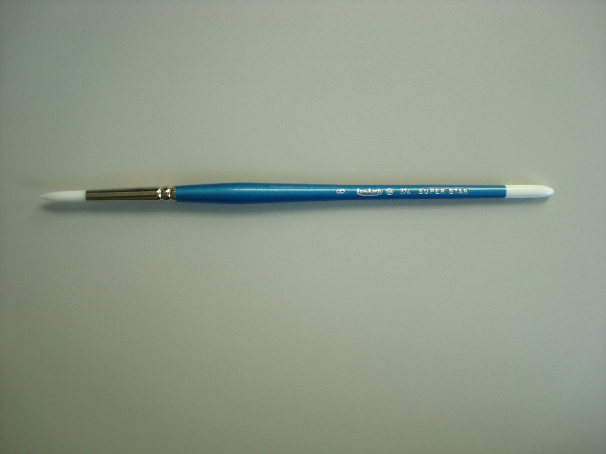 runde Spitze, hohe Farbaufnahmekapazität und Elastizität. Weisse Torayhaar Mischung, kurzer metallicblauer Stiel mit weisser spitze