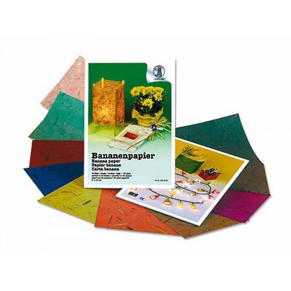 Naturpapier mit Fasern vom Bananenbaum, 35g/m². Sortiment mit 10 verschiedenen Farben. Format: 21 x 31 cm