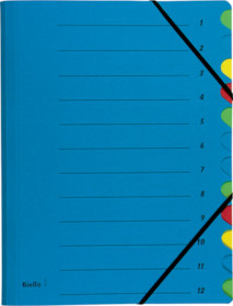 Einband aus farbigem Karton, blau, 450 g/m2, Inhalt farbiger Karton, 320 g/m2, Indexdruck auf Vorderdeckel, mit Gummibandverschluss, für Format A4. Nachhaltigkeit eco:plus: Zertifikat: FSC, Der Blaue Engel.