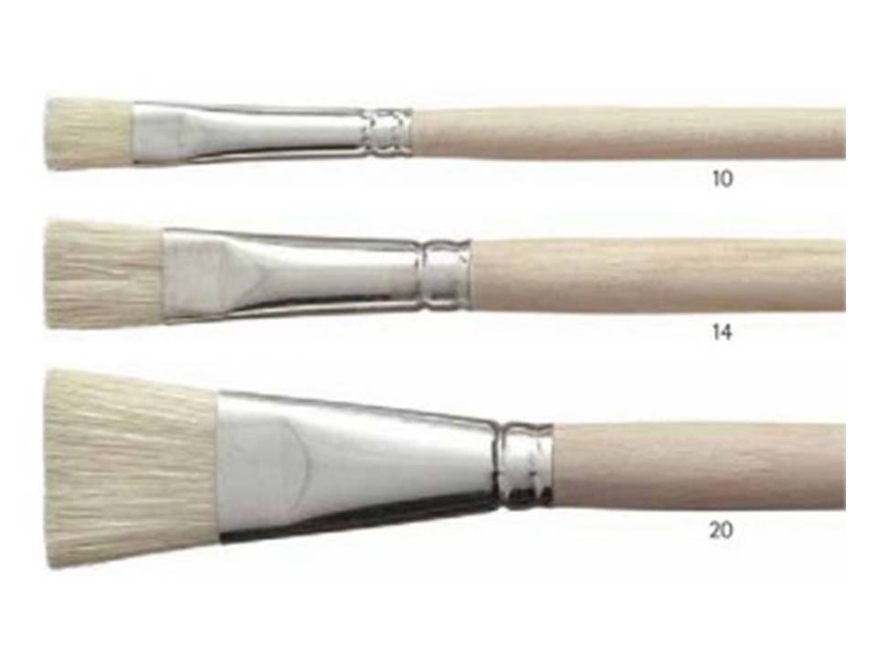 weisse Borsten, flach gepresste, langer Naturholz Stiel, nahtlose Aluminiumzwinge. Borst-Gussowpinsel.