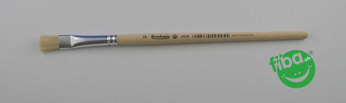 weisse Borsten, flach gepresste, kurzerer Naturholz Stiel, nahtlose Aluminiumzwinge. Borst-Gussowpinsel.
