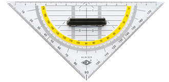 aus Kunststoff mit Facetten und Tuschenoppen. Die Kanten, Winkel und Massskala sind farblich hinterlegt. Mit abnehmbarem Haltegriff.