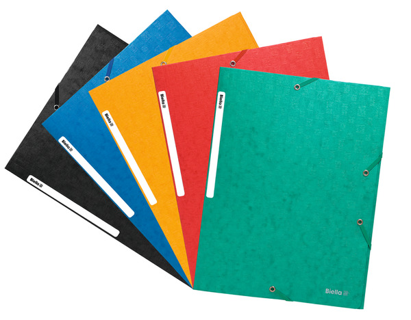 Format 235 x 320 mm, Fassungsvermögen bis 200 Blatt für A4, mit 3 Seitenklappen und Elastik-Verschluss, mit Beschriftungsfeld am Rücken.