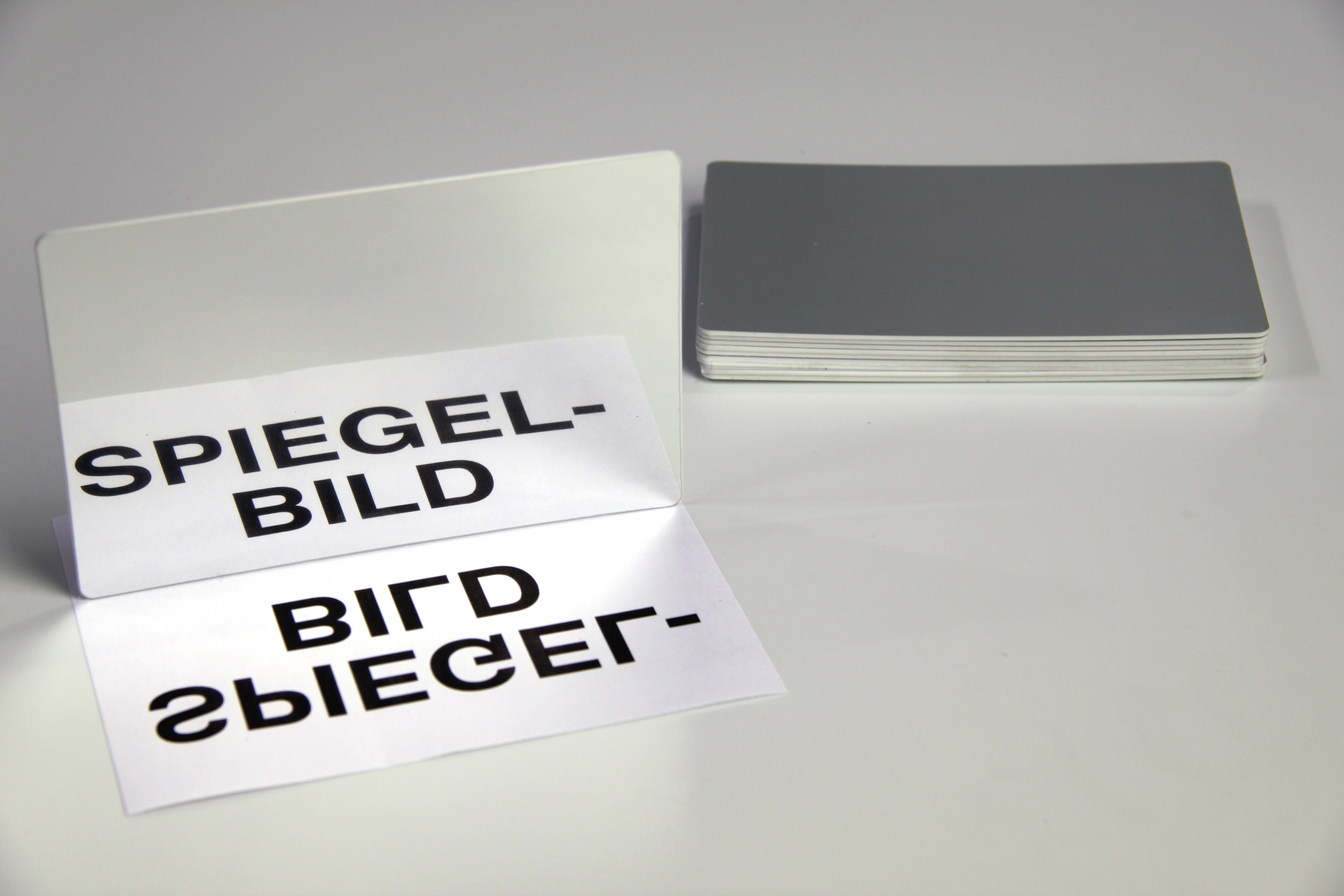 Unzerbrechliche Spiegel aus 1.5mm starkem Kunststoff, einseitig verspiegelt, mit abgerundeten Ecken.
