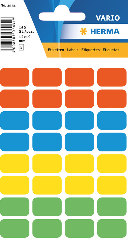 12x19mm farbig rot,blau,gelb,grün, Packung zu 160Stk