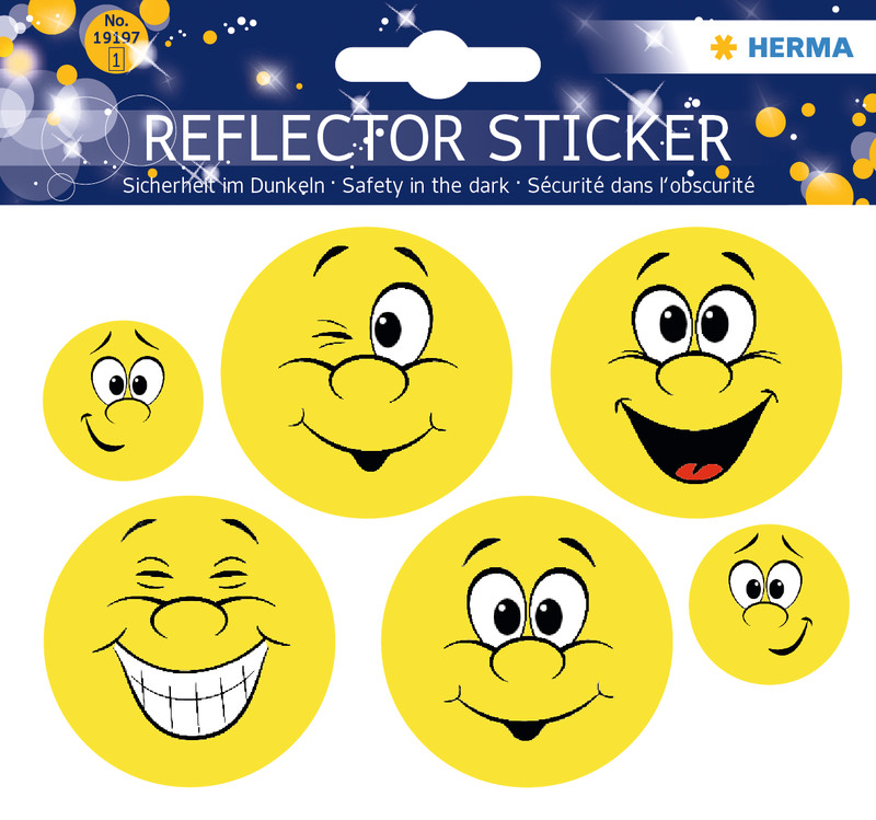 bringen Sicherheit im Dunkeln, Reflektionsweite von ca. 150 m, haften auf glatten Oberflächen und den meisten Textilien, Blattformat 127 x 91 mm. Beutel zu 1 Blatt.