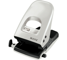 Unterteil und Griff aus robustem Metall, für 8 cm Lochabstand, Loch Ø 5,5 mm, Anschlagschiene mit farbiger Bedruckung und Fenster, ultra-scharfe Lochstempel, mit Griffniederhalter für praktisches Verstauen, patentierte Griffmulde für leichtes Lochen, Stanzvermögen 4 mm (40 Blatt).