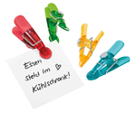 Die praktischen Klammern aus Kunststoff mit geriffelten Griffflächen in 4 transparenten Farben. Ausgestattet mit einem starken Magneten sorgen sie dafür, dass Ihre Notizen auf allen metallischen Oberflächen haften bleiben. Haftkraft mind. 20 Blatt Papier im A4-Format (80g/m²).