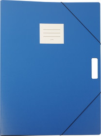 aus Spezialkarton 1,3 mm, aus blauem CH-Color, 100% Altpapier, genarbt, mit Beschriftungsetikette. Nachhaltigkeit eco:plus: umweltfreundliche Verpackung.