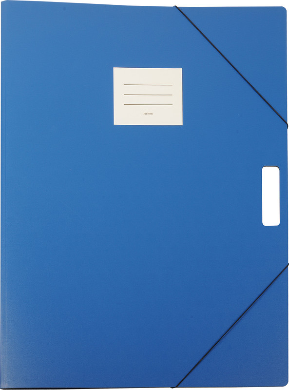 aus Spezialkarton 0,95 mm, aus blauem CH-Color, 100% Altpapier, genarbt, mit Beschriftungsetikette.