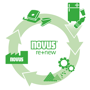 aus 95% rezikliertem Plastik, Innenleben aus Metall Heftet bis 25 Blatt, Klammern 24/6
