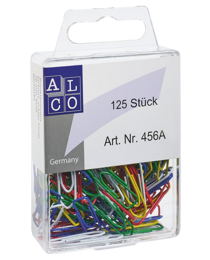 ███ farbig assortiert, Ersatzprodukt Alco Büroklammern 26mm, Schachtel zu 125 Stk.