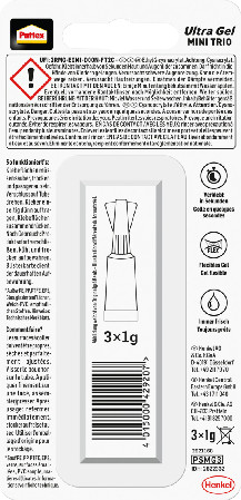 universeller Sekundenkleber für alle Sofortreparaturenklebt fast alle Materialiennicht geeignet für GlasPE und PPkurzzeitig korrigierbargelförmigstoss- und wasserfestvibrationsdämpfendin 3 praktischen 1 g Tuben.
