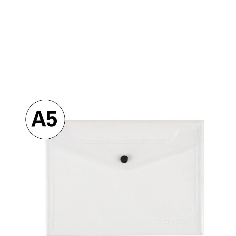 aus halbtransparentem PP, 172 Micron, mit Druckknopfverschluss, Fassungsvermögen bis 50 Blatt.