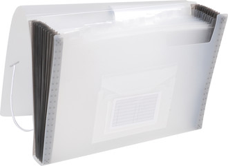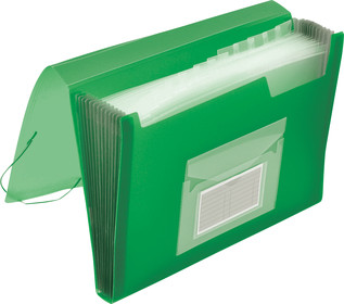 aus PP, 13 Fächer mit 12 Reitern zum Einschieben von Beschriftungsetiketten, inkl. Etiketten A – Z und Jan. – Dez., 2 aufgeschweisste Einstecktaschen, mit Gummibandverschluss, Fassungsvermögen bis 25 mm, für Format A4.
