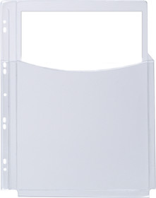 aus PVC 180 µ, transparente, extrastarke Folie, aufgeschweisste Tasche mit Seitenfalz, Universallochung, Füllhöhe bis 20 mm.