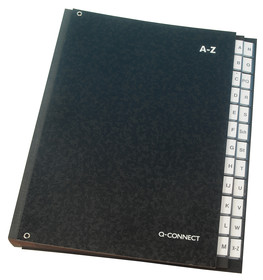 Einband aus Hartkarton, Tabs aus PVC mit Einsteckschildern, mit Schaulöchern, dehnbarer Geweberücken, für Format A4. Masse: B 272 x T 355 mm.