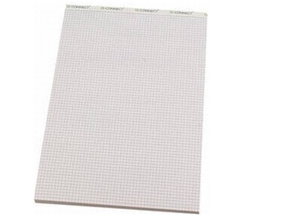 Blatt auf Kartonunterlage geheftet, perforierter Abriss und Leinwandrücken. Papier 65 g/m².