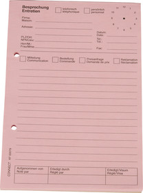 60 g/m2, 80 Blatt, auf Kartonunterlage geleimt, 8 cm Lochung, Vordruck deutsch/französisch.
