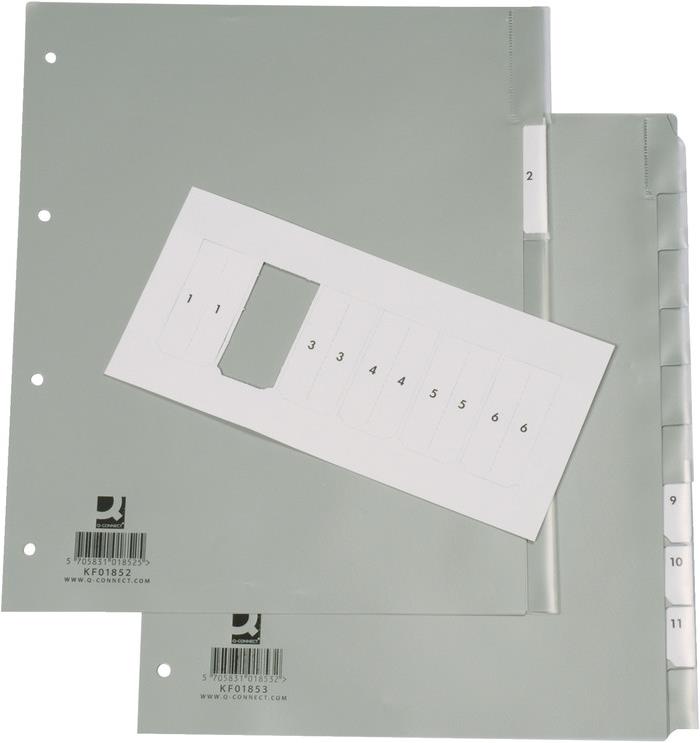 Aus PP 120 µ, grau, auch für Zeigebuchtaschen, inkl. Beschriftungsetiketten.