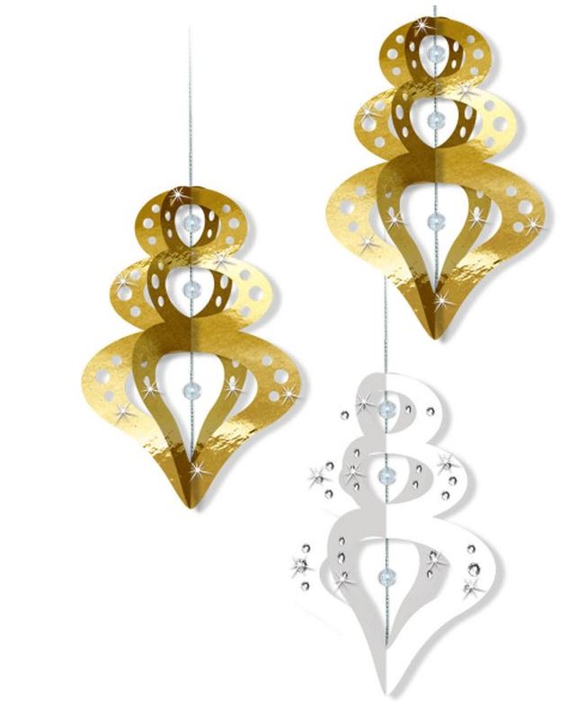 Set für 8 Ornamente: je 4 Stück in gold und weiss