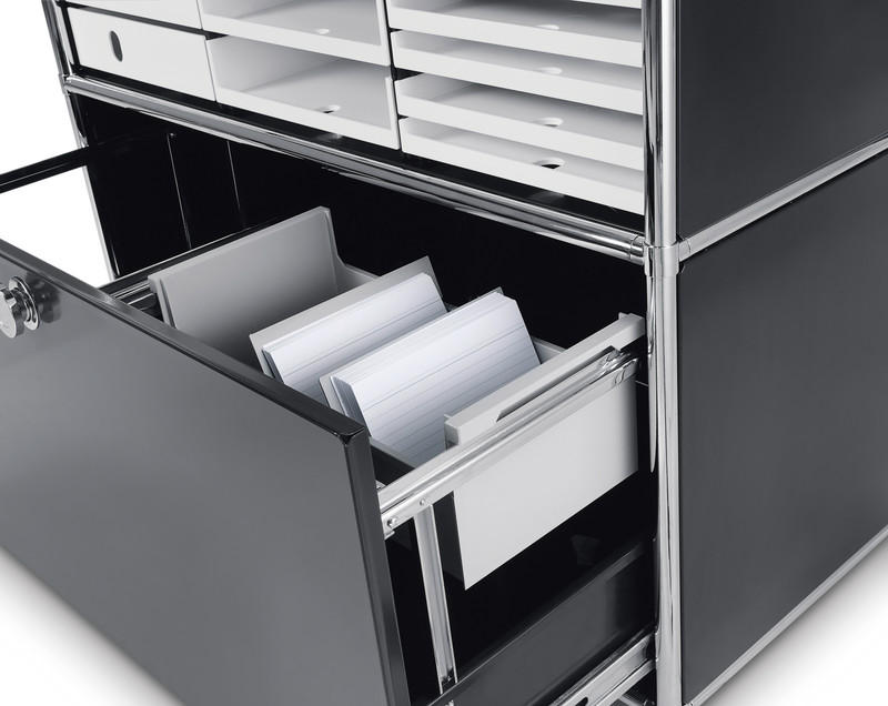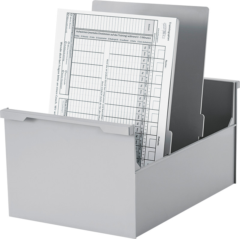 aus 100% PS-Regenerat, grau, inkl. 2 Schwenkplatten, Fassungsvermögen ca. 800 Karten. Nachhaltigkeit eco:plus: verlängertes Produktleben, recyclingfähig, recycelter Bestandteil, Recycelgehalt Abfall vor Gebrauch max. 80%, Recycelgehalt Abfall nach Gebrauch max. 80%, Abfallminderung, umweltfreundliche Verpackung. Zertifikat: Der Blaue Engel.