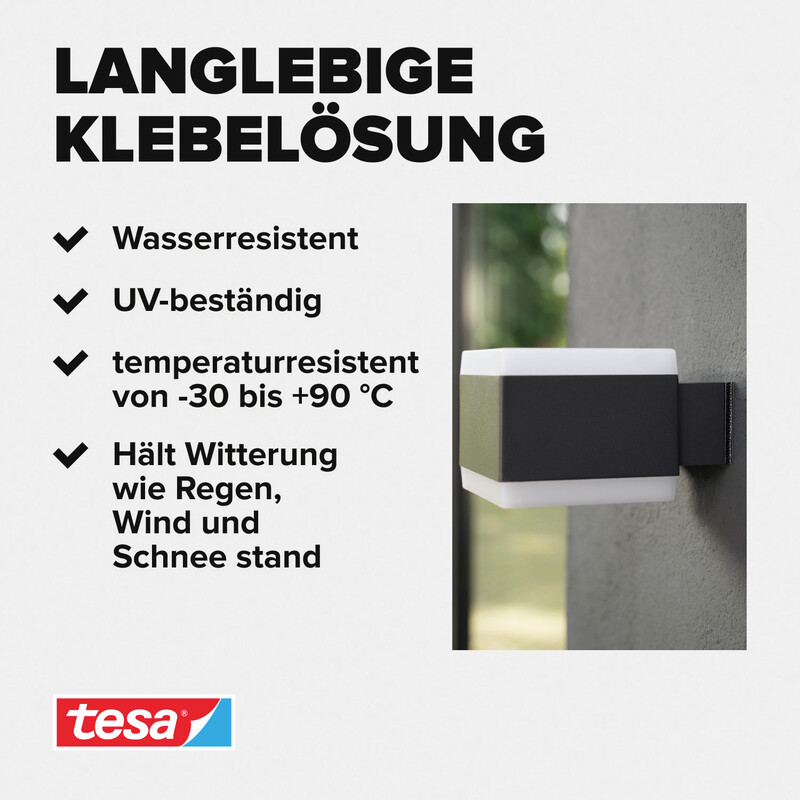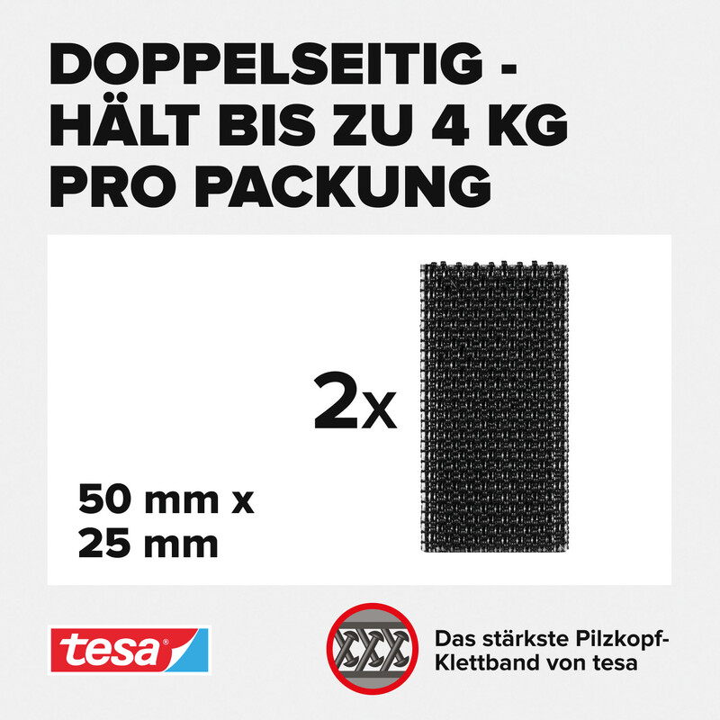 aus PP, selbstklebend, geeignet für im Haus, Garten, Auto, etc., UV-beständig, wetterfest, temperaturbeständig von -30 bis +90°C, Belastbarkeit bis 0,5 kg bei Anwendung an der Decke, bis 4 kg bei anderen Anwendungen. Blister zu 4 Stück.