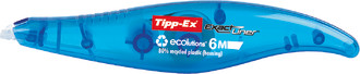 nicht nachfüllbar, perfekt deckendes Korrekturband in Stifteform, sofort überschreibbar, Gehäuse blau-transparent, hergestellt aus 80 % recyceltem PS.