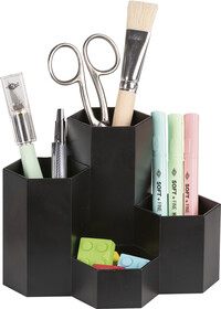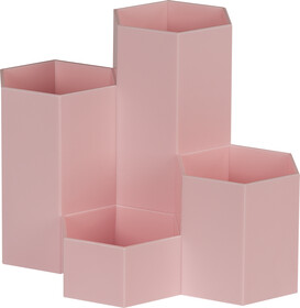 aus schlagfestem PP, sechseckiges Design, in verschiedenen Höhen angeordnet, mit 4 Fächern. Masse: B 160 x H 120 x T 112 mm.