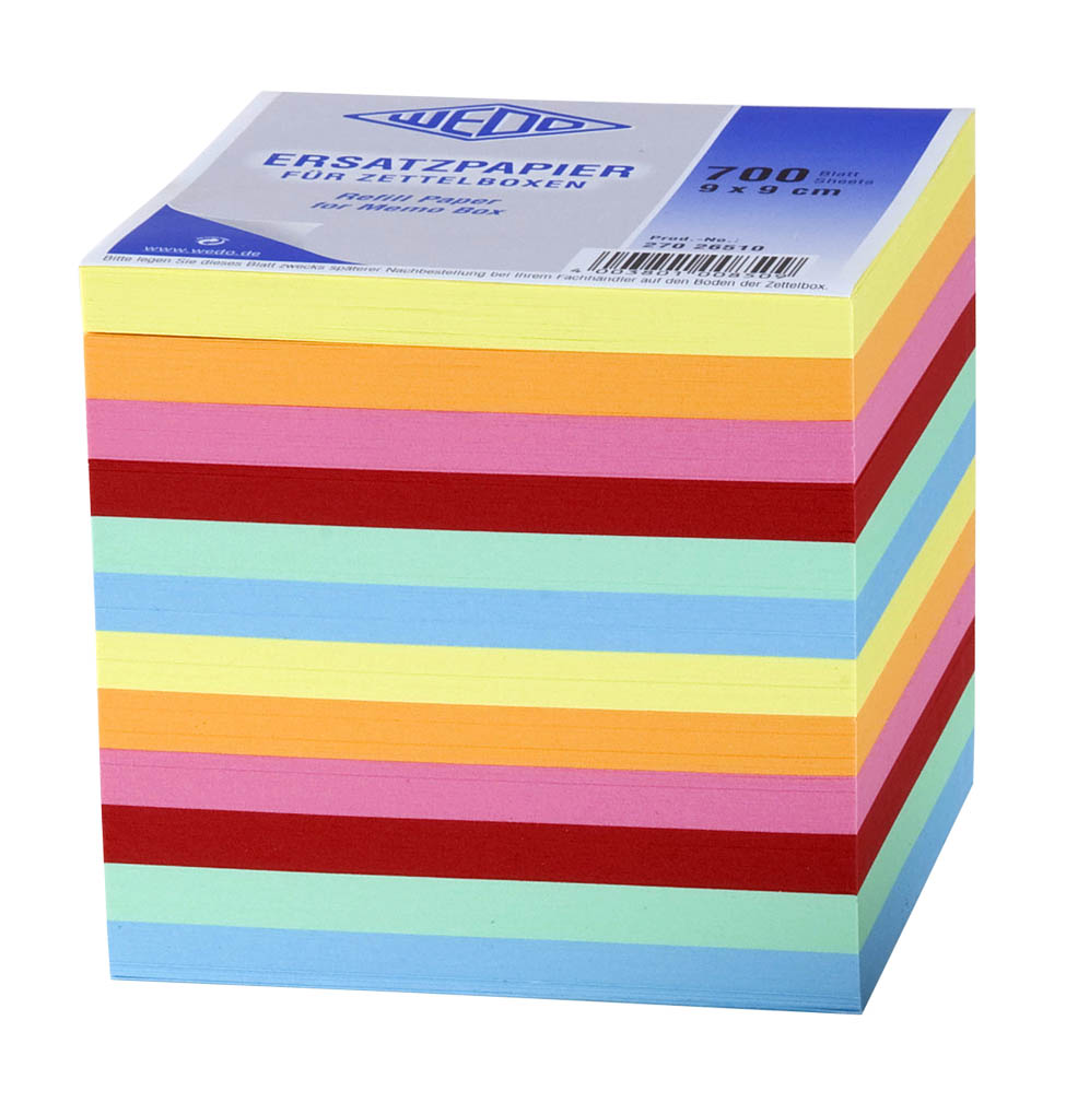 Ersatzpapier für Zettelboxen 9.5 x 9.5cm . Notizpapier holzfrei, 9x9cm, ca. 700 Blatt, lose eingeschweisst.