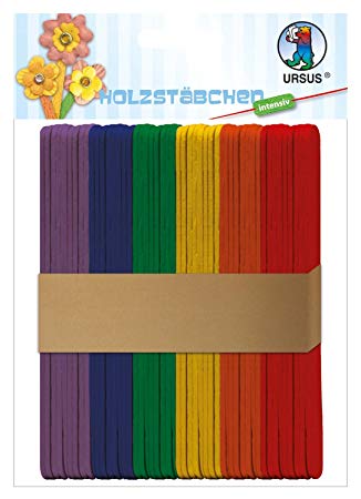 Holzstäbchen in 6 Farben assortiert.