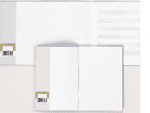 Heftschoner, Hefthülle aus Kunststoff mit Etiketten